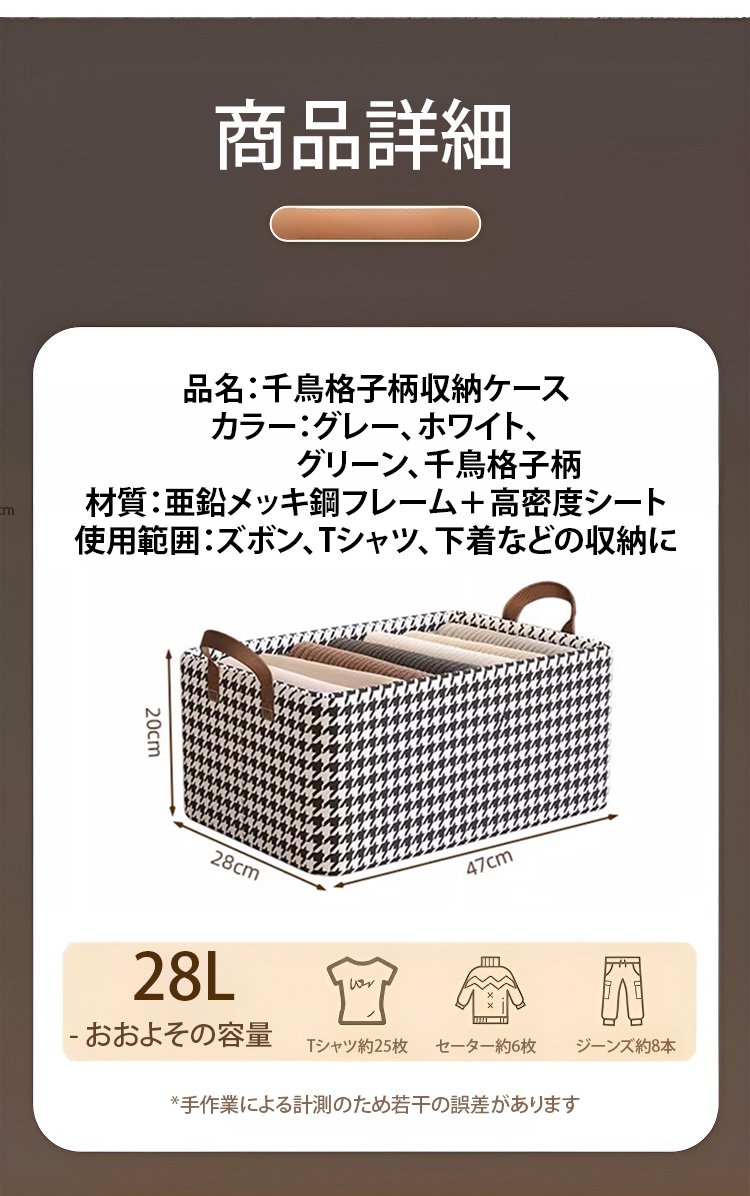 持ち手付き千鳥格子柄収納ケースの詳細