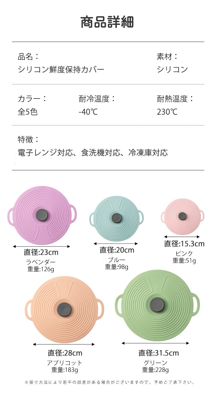 様々なサイズの容器にフィットするカバー